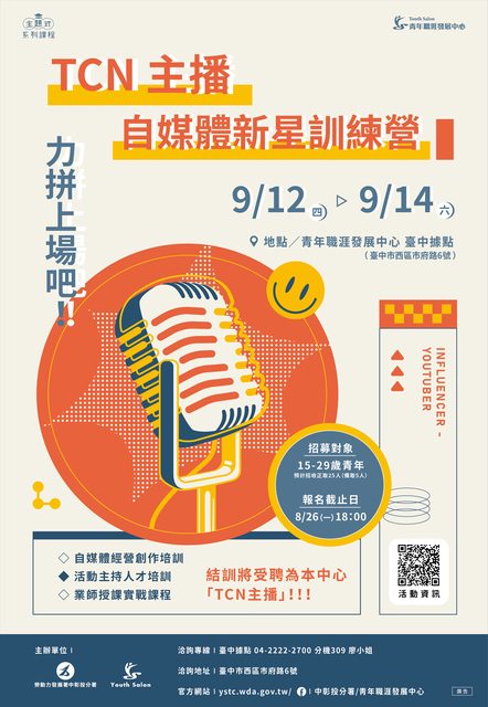 ●招募對象:15-29 歲青年,嘗試以自媒體產業作為職涯發展方向者。