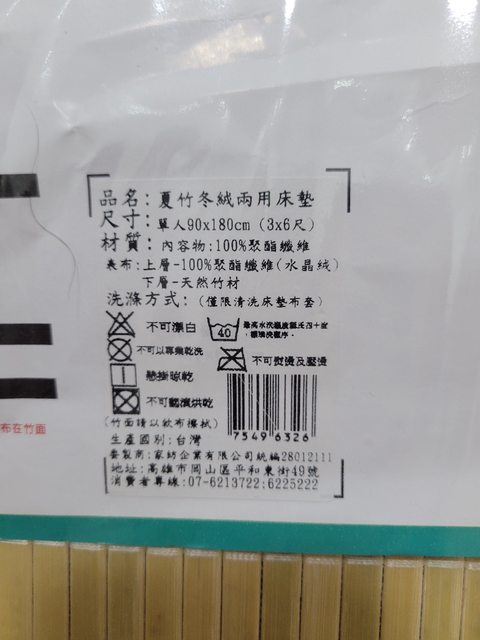物 品:宜得利 夏竹東絨單人兩用床墊