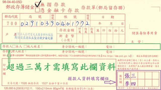 所以主任一開始就希望我們直接匯款到她們的北苗郵局帳戶