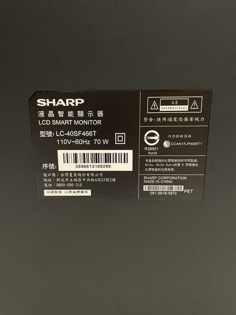 物品:SHARP40吋電視(LC-40SF466T)