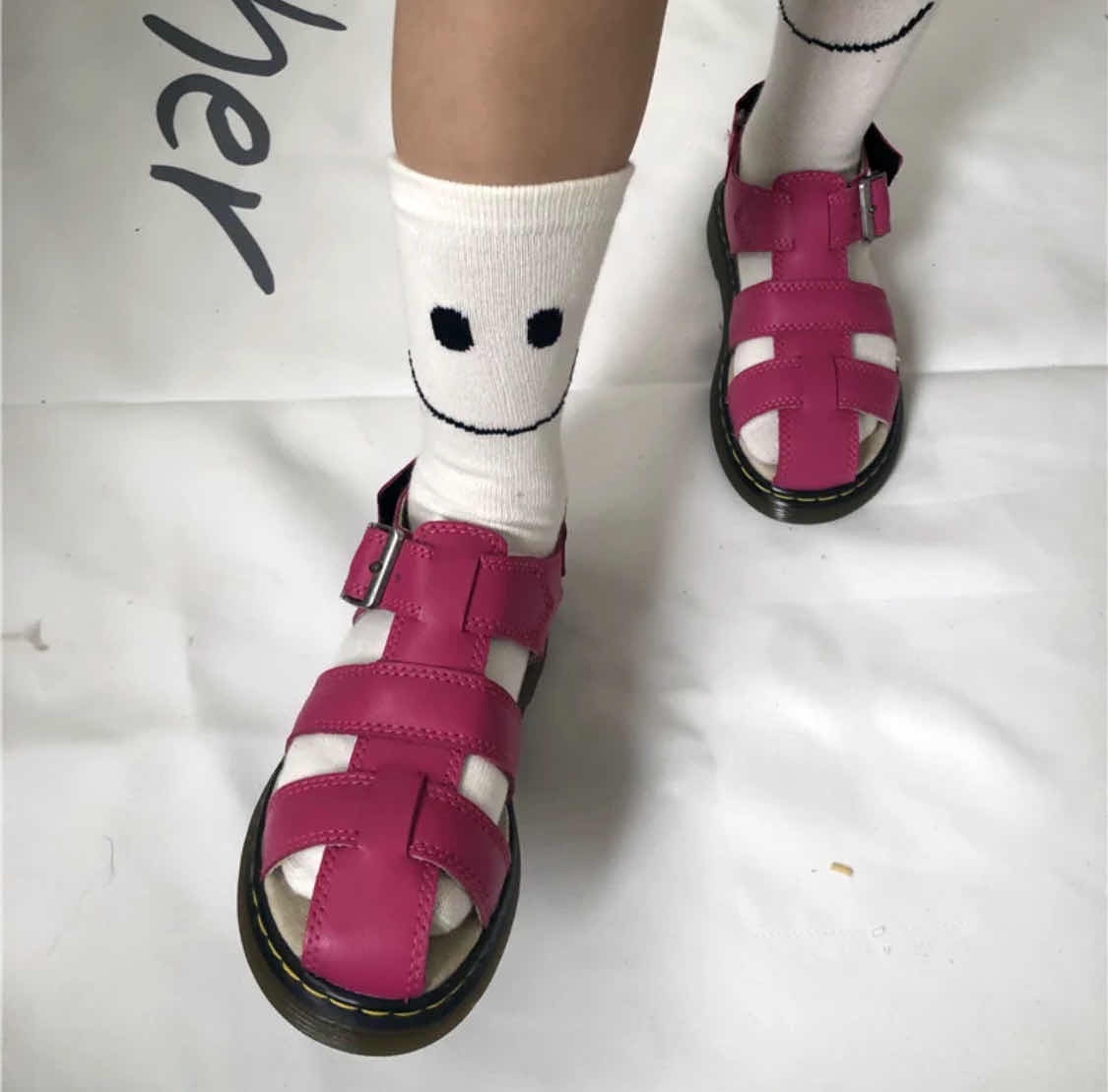 物品:全新馬丁粉紅色羅馬涼鞋34號盒裝
