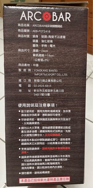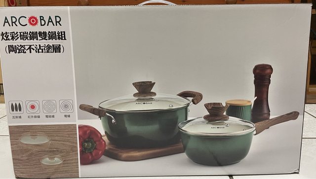 1. ARCOBAR炫彩碳鋼雙鍋組(陶瓷不沾塗層) 全新未拆封 售1000(細節如圖示)