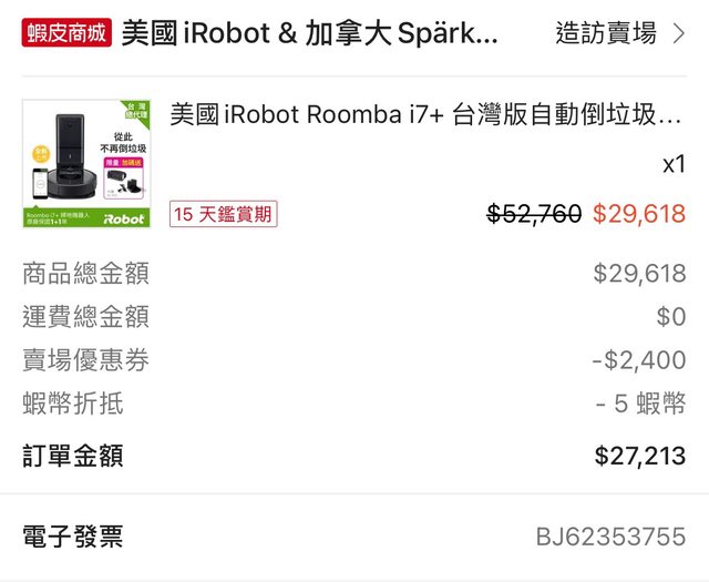 物品:iRobot i7 掃地機器人+自動集塵器
