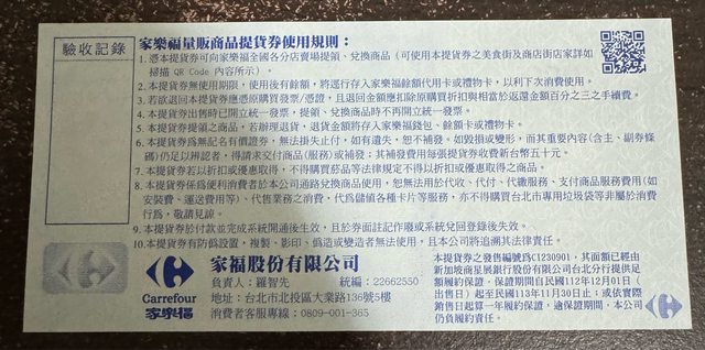 物品:家樂福1000元禮卷