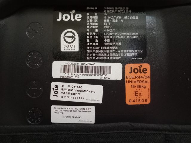 『二手 約九成新,奇哥 Joie trillo 兒童成長汽車安全座椅3-12歲 型號:C1118C』