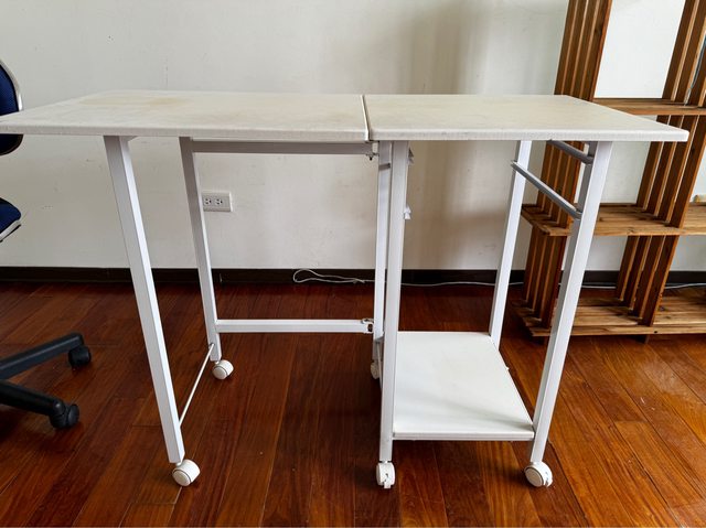 物品說明:以前好像叫作美甲桌,有滾輪,還很穩,桌面有使用痕跡,我盡力了擦不掉