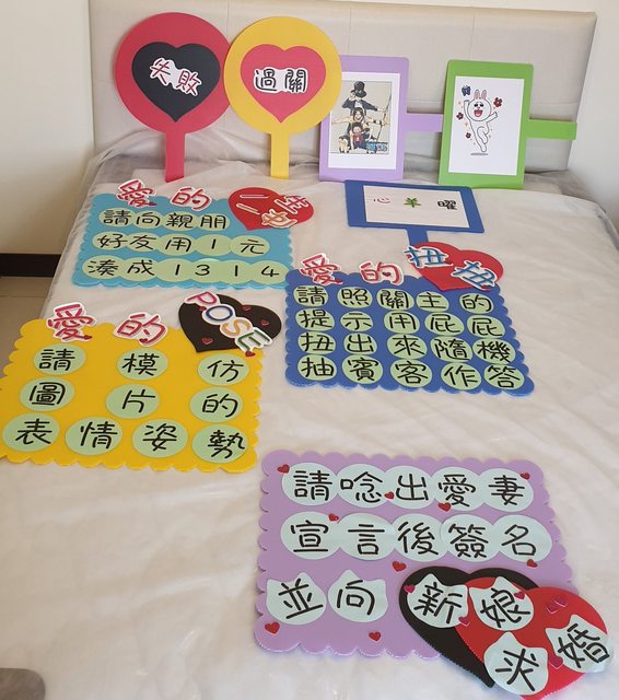 : 物品名稱:闖關遊戲板子道具、簽名筆等結婚物品