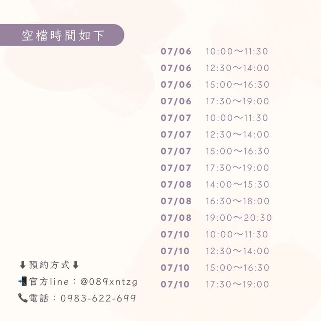 地點:台南市永康區(預約完成後給完整地址)