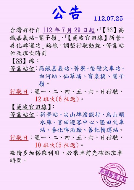 剛剛看新營客運臉書有發公告了