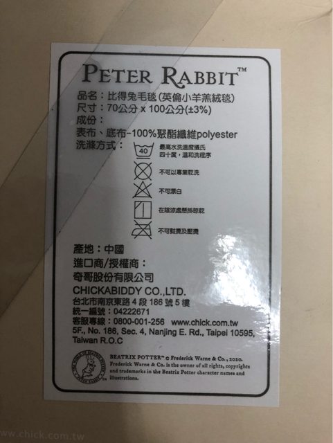 彼得兔毛毯禮盒 800(全新未拆封)