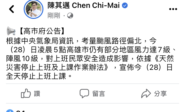 → ctes940008: 高雄也停班停課 07/28 06:03