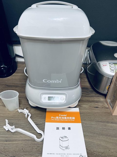 交易物品: Combi Pro高效消毒烘乾鍋(其中奶瓶夾全新沒用過)機體約8成新,功能一切正常