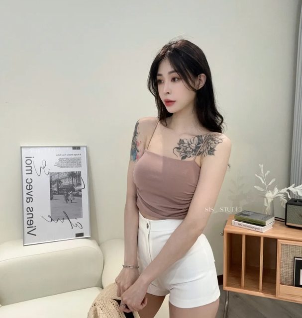 標題[交易] 全新 短版側抓皺細肩胸墊背心