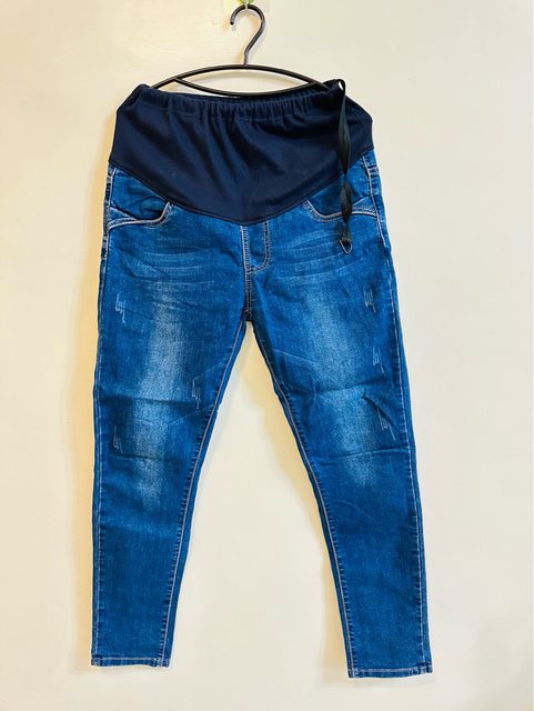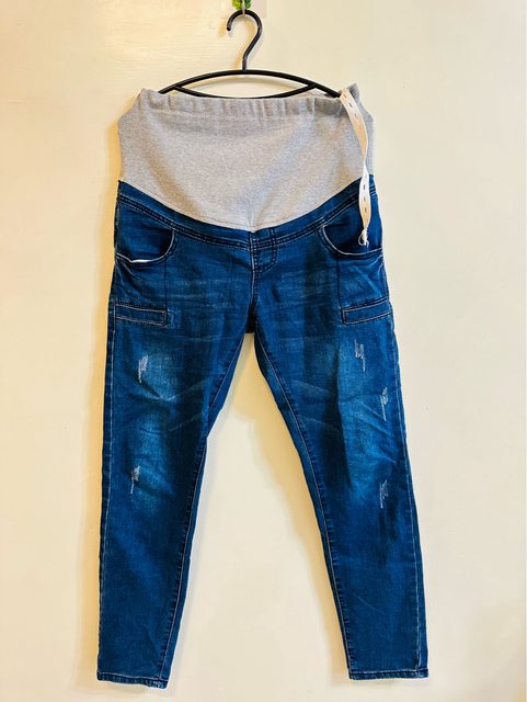 不對稱修身窄管牛仔孕婦褲