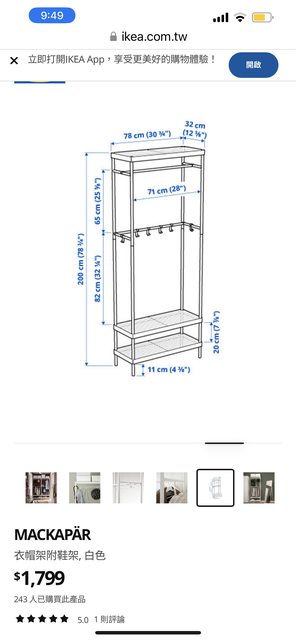 1. 二手ikea 衣帽架 售1000元
