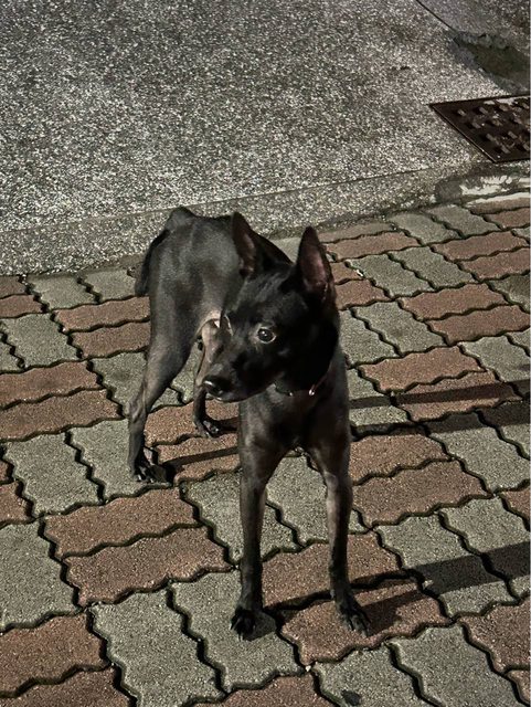有一隻疑似走失的黑色狗狗