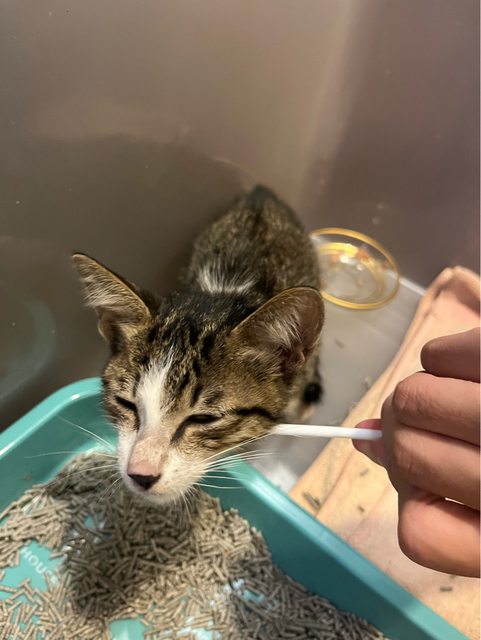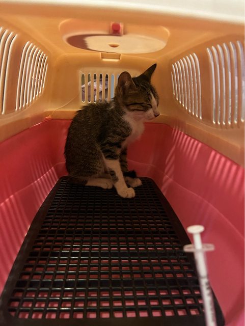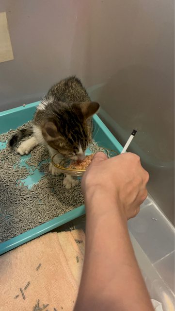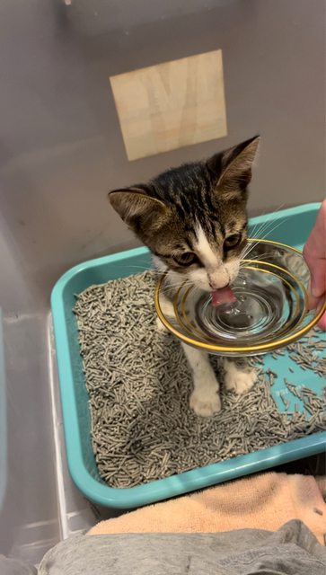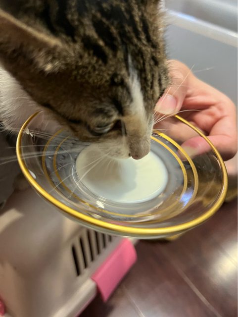 不過經過一晚,已經會喝水吃罐罐也有喝貓牛奶