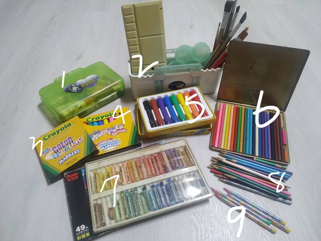 2 水彩用品(水桶、水彩筆多支、調色盤x3、使用痕跡明顯,介意者勿索取)