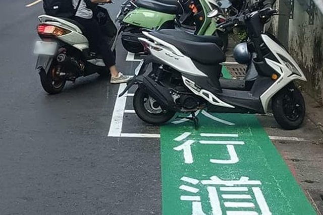 色人行道,有許多機車停上去,影響路人行走權益。他們希望前瞻計畫經費可以把綠色人