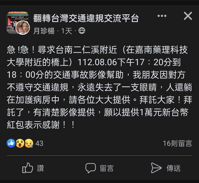 標題[徵求] 8/6二仁溪橋上行車記錄器