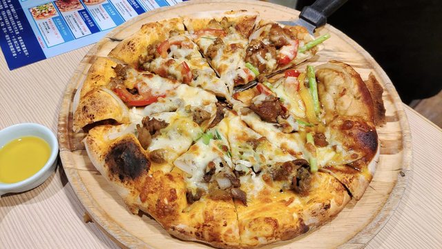 披薩吃起來薄脆可口,配料有幾款給的也都不手軟,扣除幾款不