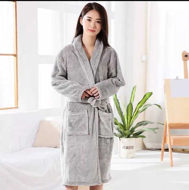 2.灰色浴袍,9成新,肩膀有脫線,100元,圖為賣場照