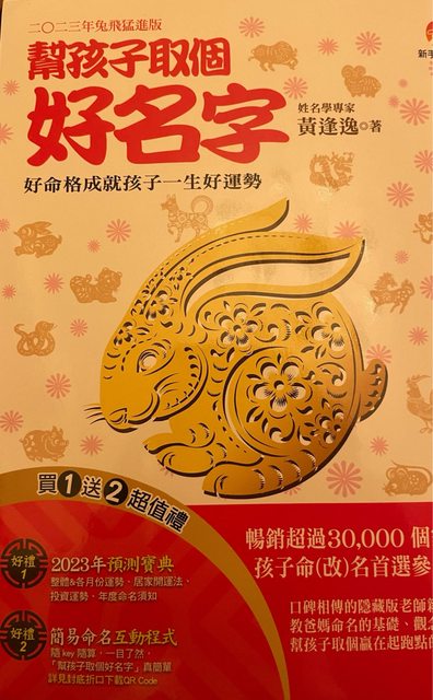 交易物品/金額/說明:兔年取名書-幫孩子取個好名字。 因為小孩已出生,取好名字 故贈