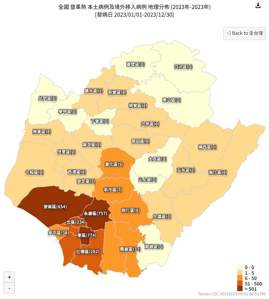 衛生局表示,病例數增多主要是9月2日起,台南市全市公告