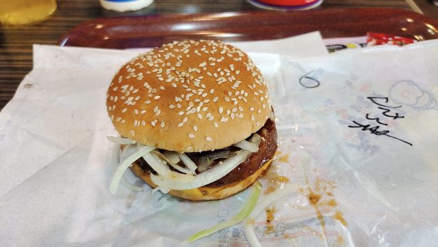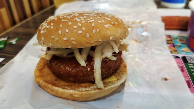 在食材的部分,由漢堡麵包搭配加量洋蔥、泰式醬汁、雞腿肉排