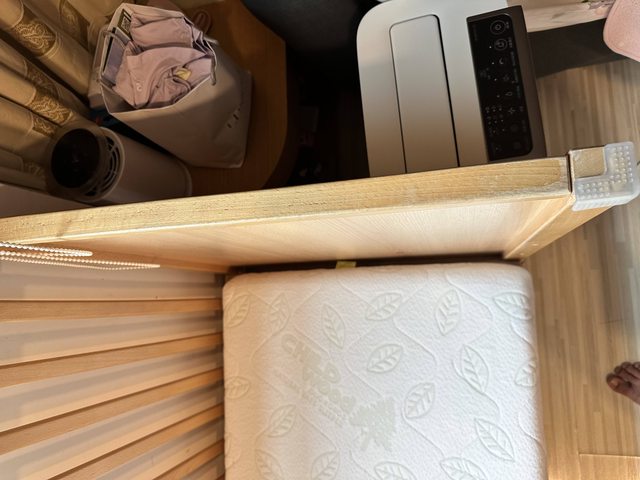 四個腳有附輪子,因放在床邊,沒有安裝使用過,目前小孩長大出售