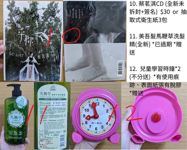 10. 蔡茗淇CD (有簽名) /$30 或是 不限品牌抽取式衛生紙3包