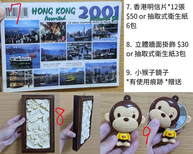 7. 香港明信片*12張/$50 或是 不限品牌抽取式衛生紙6包
