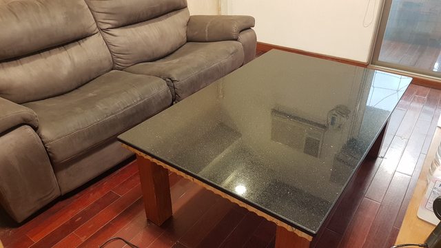 大理石實木茶几, 賣750元,很有質感,但太大太重老婆嫌有點佔空間所以換小一些的。