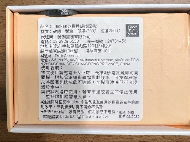 1. Haakaa乳房貝殼按摩機/$700/112.3.18於momo購入,在住奇美月子中心時,他們有提
