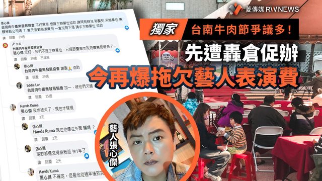 張心傑迄今未收到回覆,就連當天參與活動的業者也遭欠款