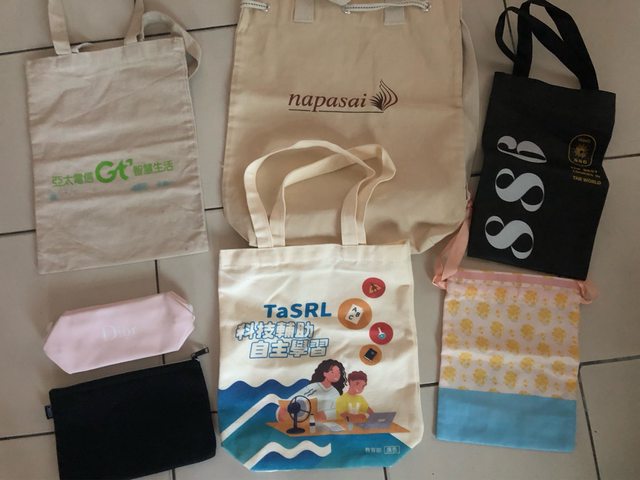 跟版友索取的,但有一些沒有用到,其中一個大的是側背帆布袋,原以為是可以雙肩背的