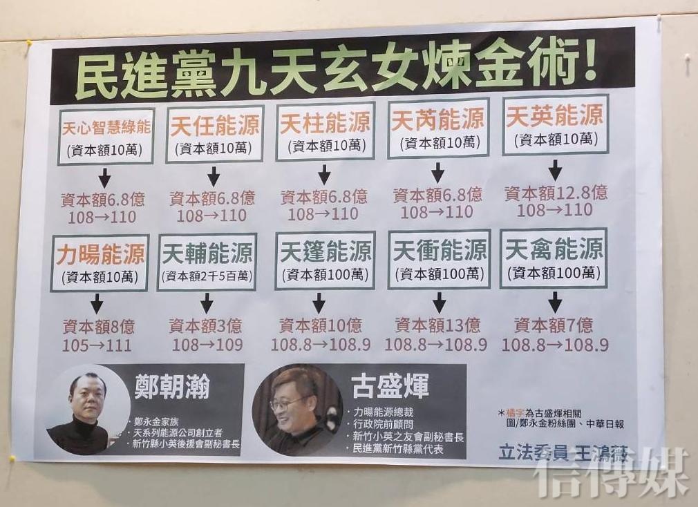 所持股的天心、天英、天柱、天任、天芮等5家能源公司的資本額由10萬元暴增翻成數億