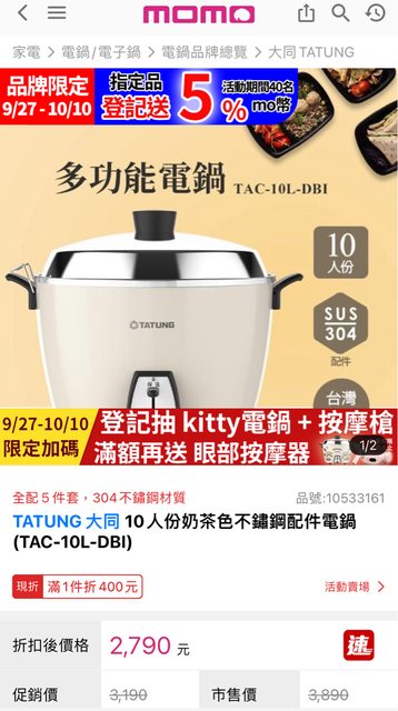 標題[交易] 奶茶色十人份大同電鍋