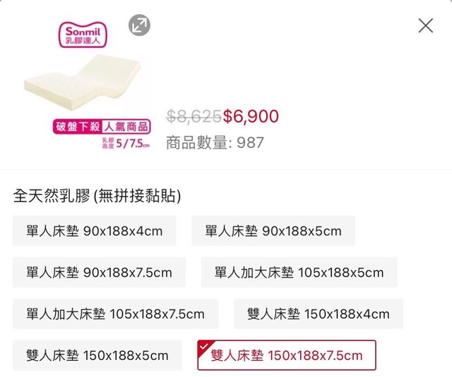 交易物品: 【舒蜜爾】雙人乳膠床墊