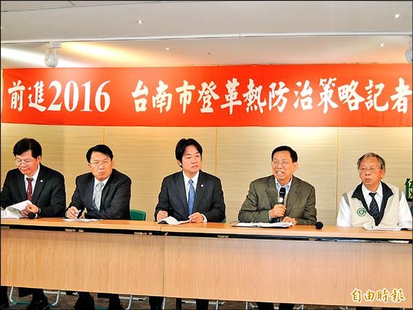 面對颱風小犬來襲,台南市長黃偉哲強調防颱與防疫並重,登革熱疫情持續嚴峻,沒有鬆