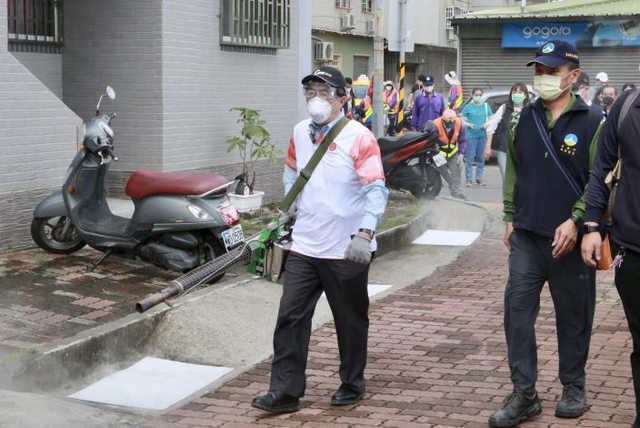 黃偉哲今(7)日也前往南區慰勞環保志工,並加入化學噴藥協助工作。黃偉哲表示,因