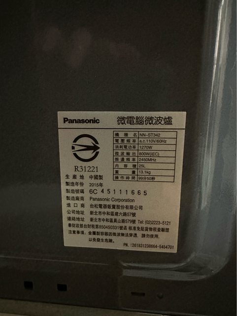 售 二手【Panasonic國際牌】 25L微電腦微波爐 型號:NN-ST34NB