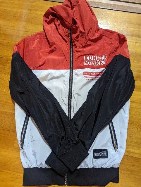 年輕時非常喜歡這件,穿起來直挺,帽子有反光材質,但年久已部分失光澤,但衣身部分