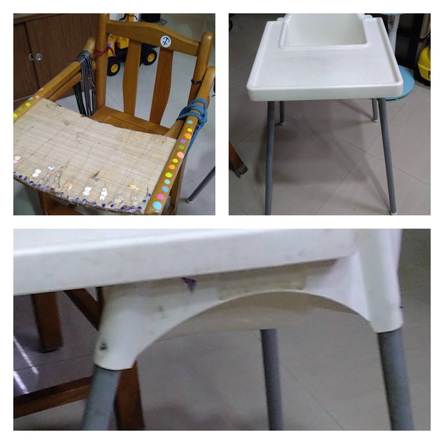 贈送幼兒學習餐椅2個(一個是ikea,一個是木頭)。