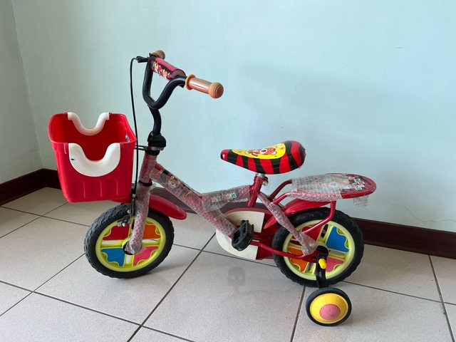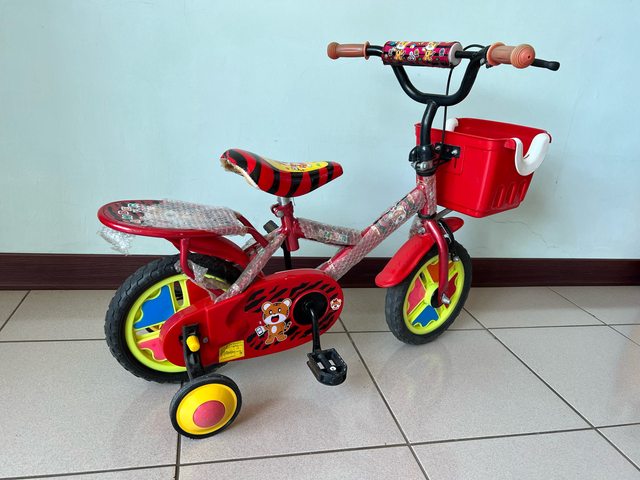 有輔助輪,後方也有可愛的乘坐椅(非單純鐵架乘坐椅)