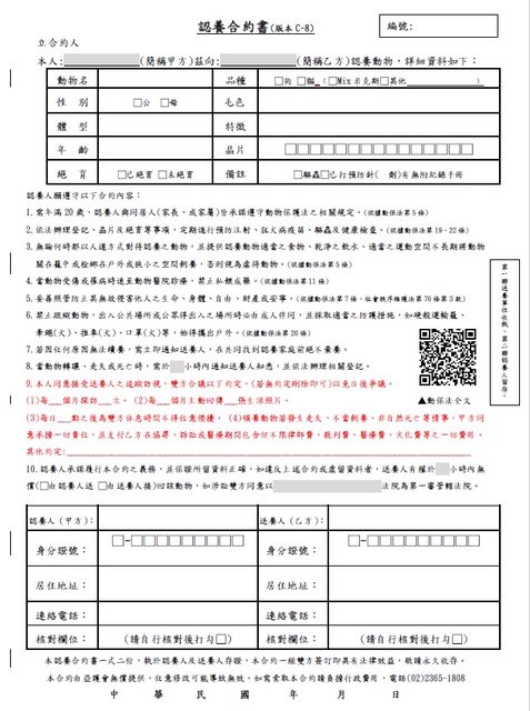 需簽署公版認養同意書