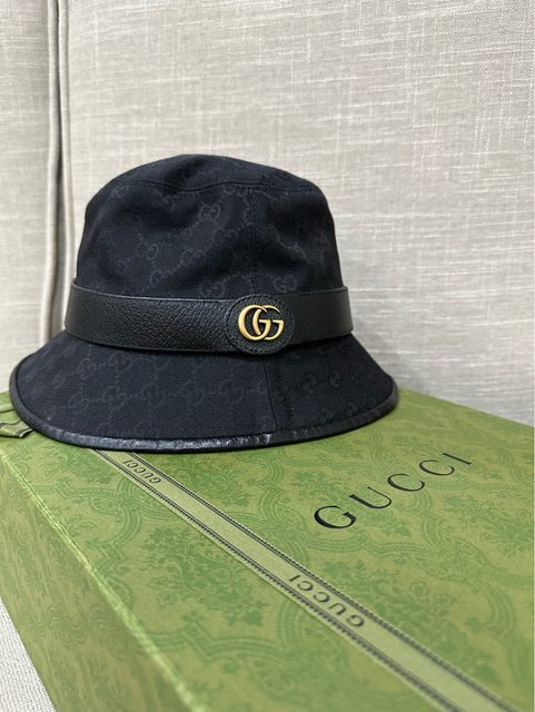 經典GG LOGO帆布皮革飾邊漁夫帽 全新 僅試戴