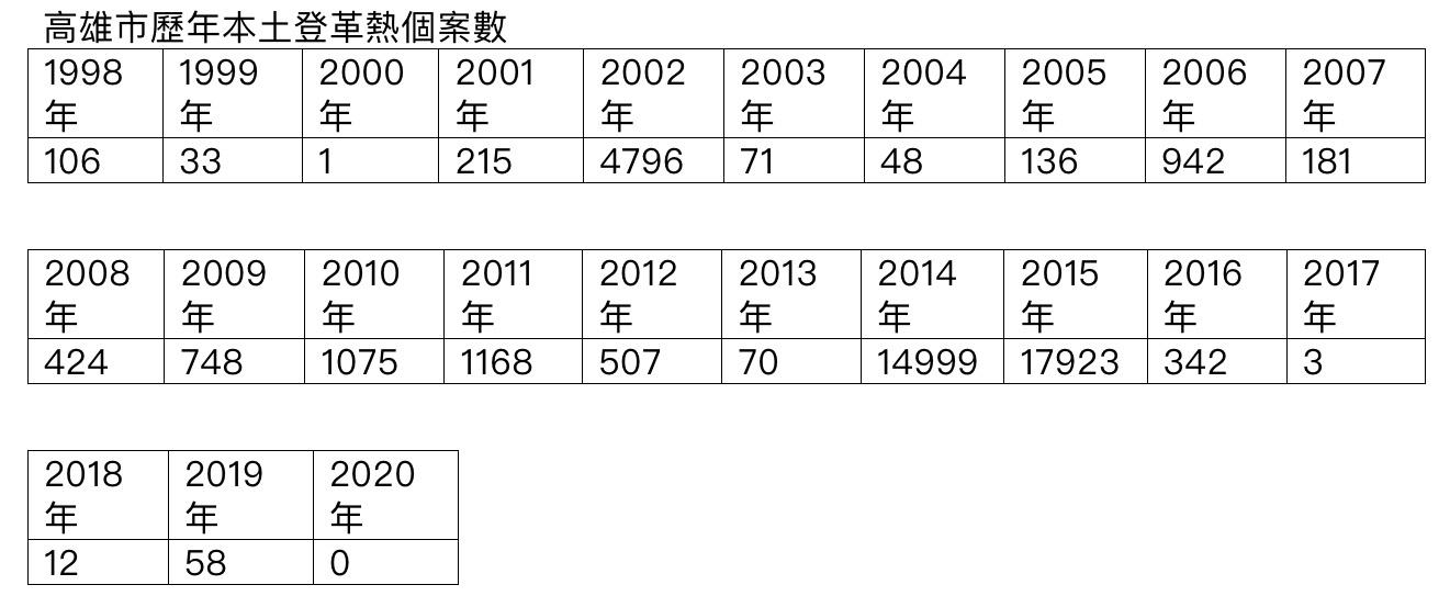 台南共17674例、高雄則為1191例。高雄市議員方信淵今(30日)上午在議會質詢時,