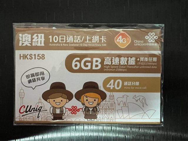 1.紐澳6G / 10日通話上網卡,不用另行開卡