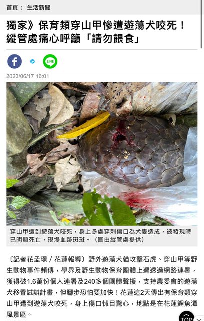 目前淺山地區遊蕩犬狀況非常嚴重,造成穿山甲等野生動物遭犬傷,民眾切